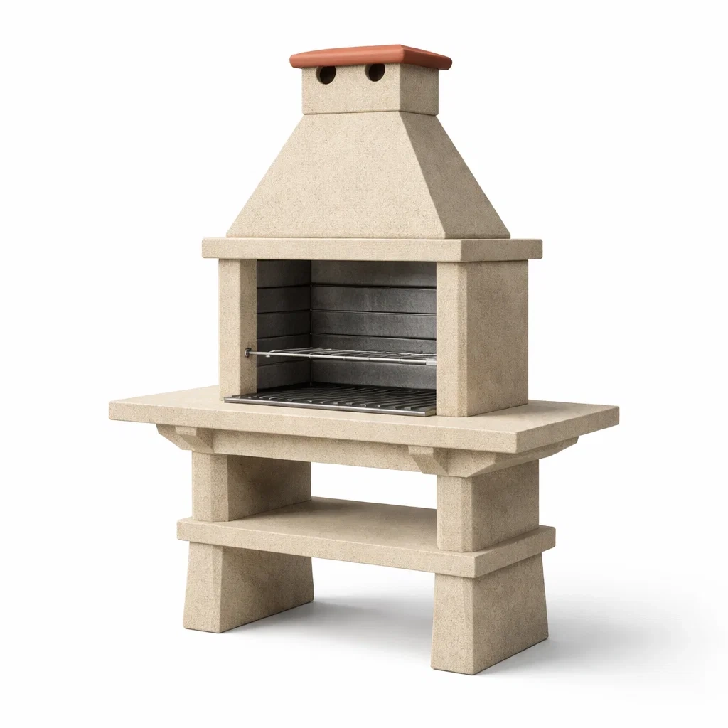 Barbecue en Béton Beige avec Grille et Hotte